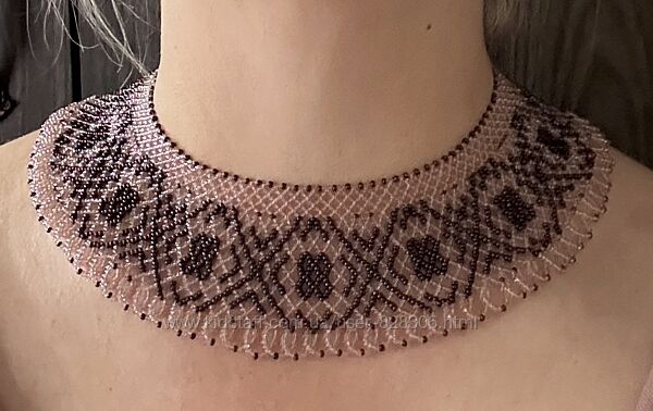 Силянка ручної роботи з чешського бісеру, застібка карабін.Мін довжина 37 см, макс 43,5 см (з подовжувачем 6,5 см) по внутрішньому колу,вага 60 гр, ширина 5.5 см. Кольори: рожевий прозорий блискучий і шоколадний блискучий. Можна вдягати, як чокер або як силянку.