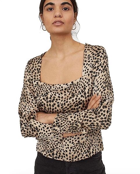Красива блузка з довгими рукавами з легкої віскозної тканини з леопардовим принтом.Квадратний виріз і довгі рукави.