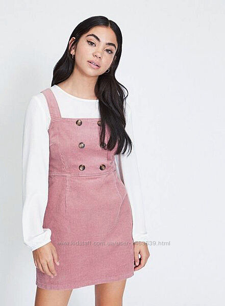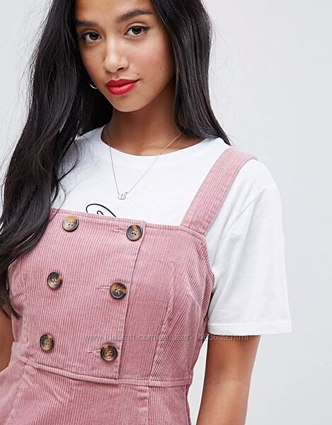 Стильний короткий вельветовий сарафан Pink Chunky Cord Pinafore Dress від бренда Miss Selfridge.Застібка на металеву блискавку збоку.