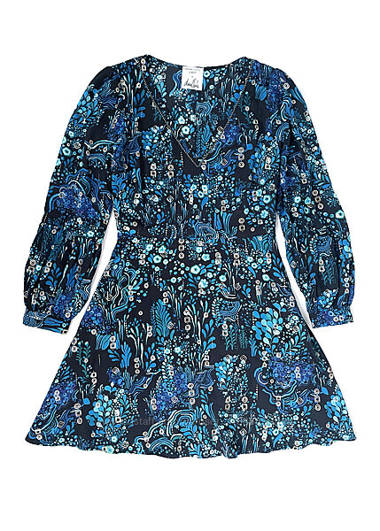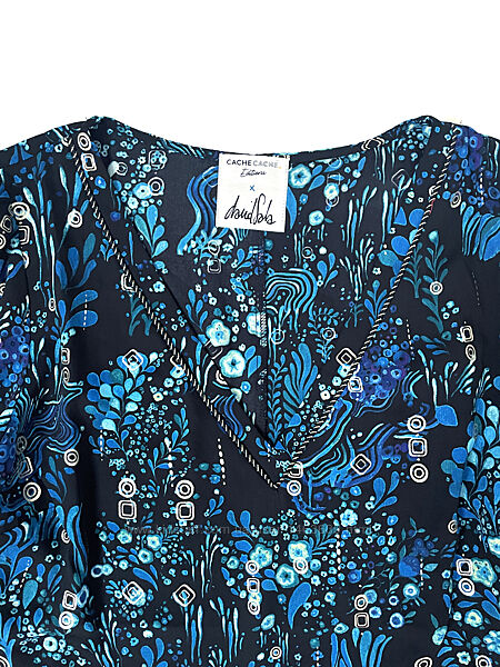 Стильна сукня з колекції Cache Cache Editions - це лінія, яка відзначає колекції, створені у співпраці з талановитими художниками. Вашій увазі французький бренд Cache-Cache представляє колаб з David Sala. Ілюстратор коміксів, Девід розробив принти для цієї капсульної колекції.Пориньте в його казковий світ і дозвольте собі захопитися відтінками синього, настільки характерними для водного середовища ????.