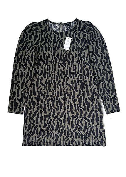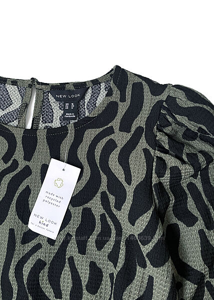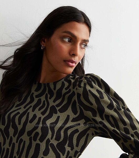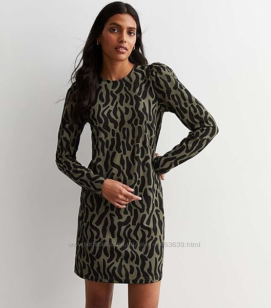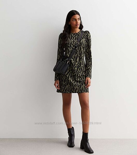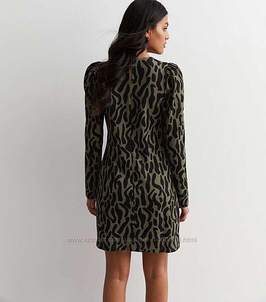 Стильна сукня від бренду New Look з оригінальним дизайном.Привабливий абстрактний принт і красиві пишні рукави роблять цю міні-сукню кольору хакі must-have цього сезону.
