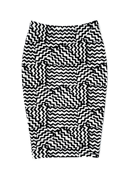 Крута фактурна спідниця-олівець з оксамитовим напиленням від бренду Asos.Графічний зигзагоподібний принт у чорно-білому кольорі.
