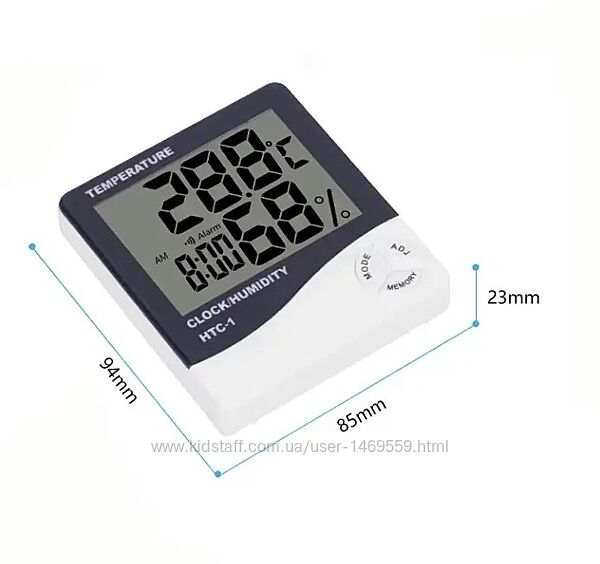Цифровий термометр-гігрометр HTC-1 з годинником-будильником