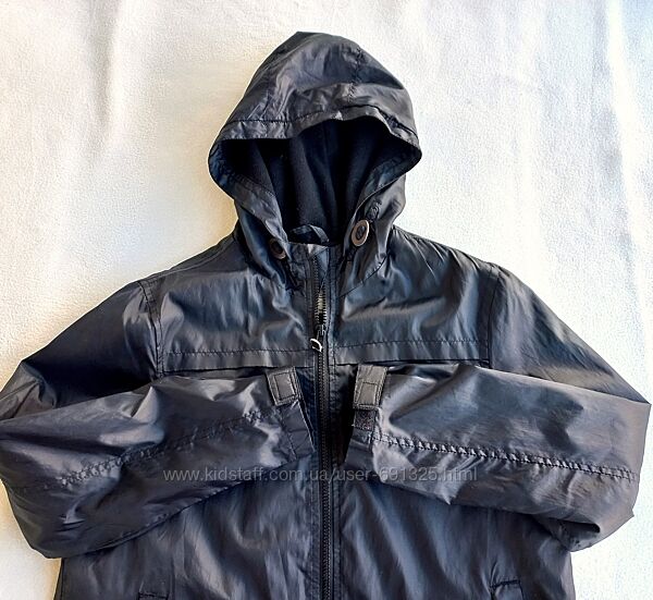 Пропоную чорну демісезонну куртку на флісовій підкладці, від Flipback. Матеріал верху водостійка плащівка, утеплювача немає. Уживана акуратно, стан дуже добрий, дивіться фото.Розмір вказано на 11-12 років. Довжина 60 см, ширина плечей 44 см, довжина рукава 57 см, ширина грудей під пахвами 53 см.