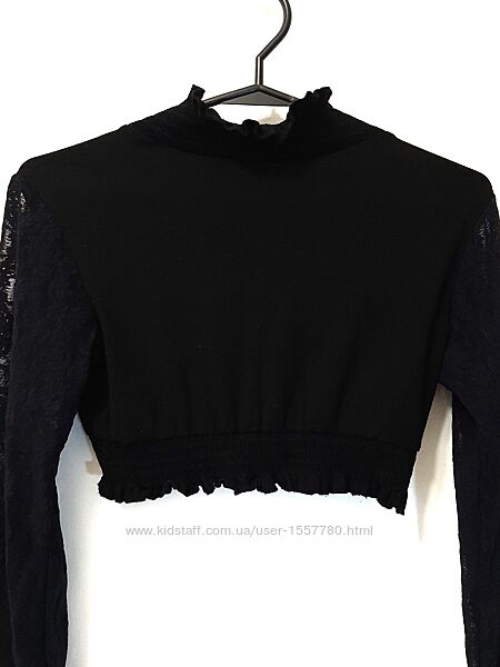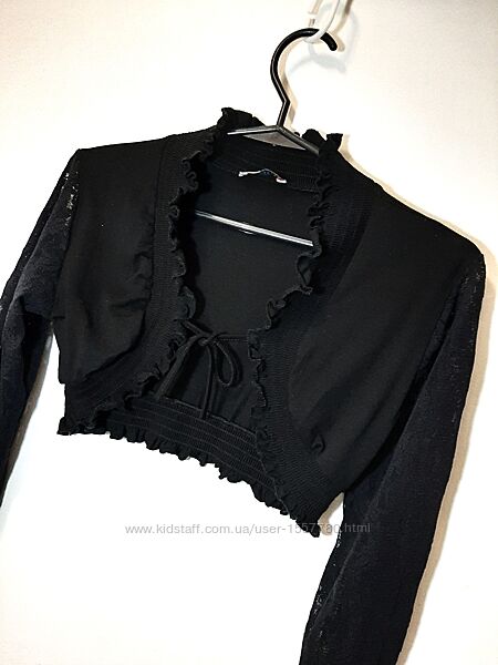 Подробное описание: Болеро чорний жіночий еластичний жакет короткий мереживні рукави довгі