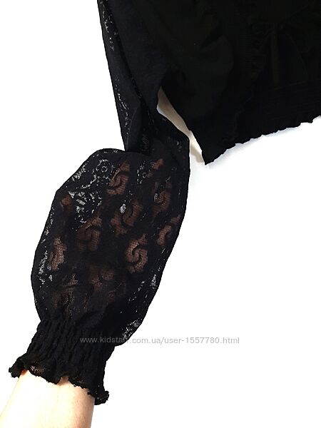Чудовий болеро чорний (італія), короткий жакет, стрейч-трикотан + мереживні довгі рукави, жіночий.Бренд Benini, Туреччина. Розмір 40-42-44.