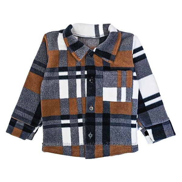 Сорочка виконана з м´якого флісу, який добре утримує тепло, залишається легким і приємним до тіла. Завдяки цьому матеріалу дитині буде комфортно як в прохолодний день на вулиці, так і в приміщенні. Принт в клітинку надає виробу виразний вигляд, а класичний відкладний комір і застібка на ґудзики роблять модель зручною та універсальною.Полотно: Фліс (100% п/е)