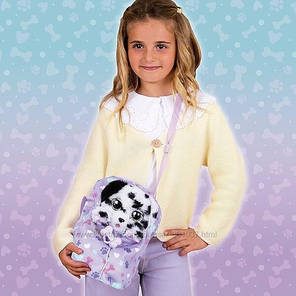 Така пухнаста: вийміть її з ковдри, і ви побачите її м´яке, пухнасте тіло. Беріть її із собою скрізь: у комплект входить симпатична сумка-пелюшка, тому ви можете брати цуценя із собою скрізь.Кожне щеня має зростання 24 см і поставляється з персоналізованою соскою та сумкою-пеленкою.