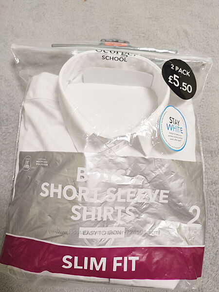 George. Англия. Белая рубашка slim fit с коротким рукавом. Возраст 11-12 лет.