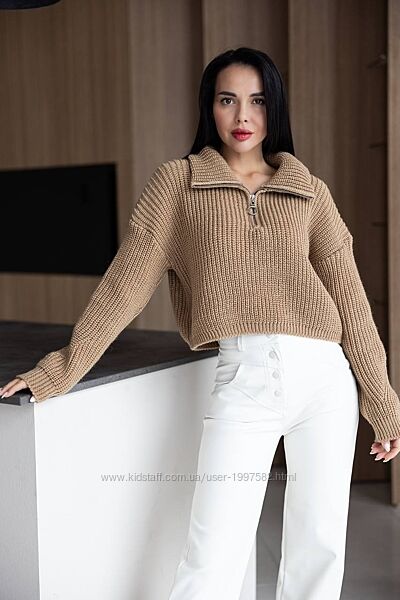 Інші светри та кофти нашого магазину, Ви можете переглянути за посиланням: https://www.kidstaff.com.ua/user-anno-1997582/sect...Затишний базовий укорочений светр з високим горлом та стильною металевою блискавкою - ідеальний вибір для прохолодних днів. Комфорт, тепло та сучасний дизайн в одному виробі.