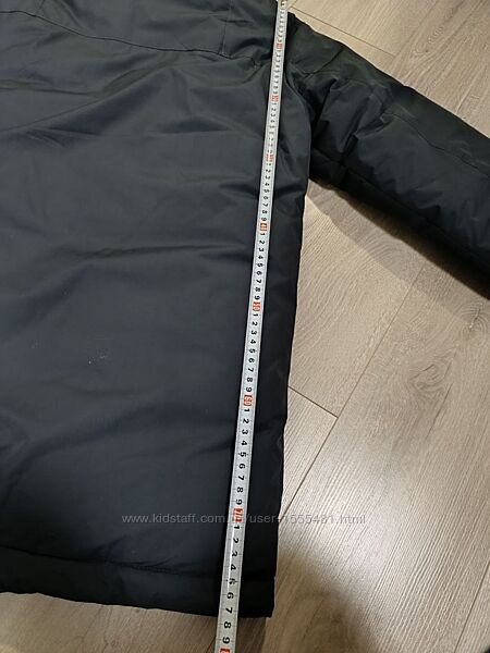 Зимова куртка на підлітка р.М. Колір графітовий. Стан нової, майже не ношена.Дуже тепла, гарної якості куртка. Каптур відстібається, низ регулюється, маншети на липучках регулюються. Заміри на фото.