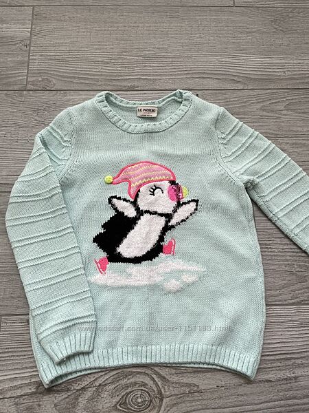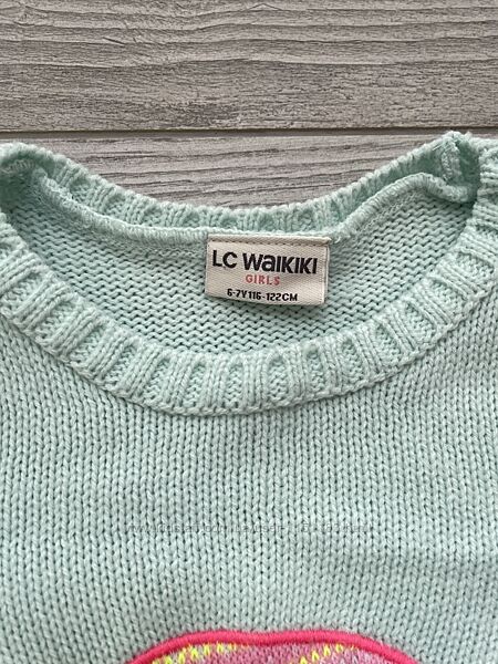 Класний світер, джемпер, кофточка.Розмір вказаний 6-7, ріст 116-122, реально підійде на довше (до зросту 134). Спочатку можна носити як трішки подовжений варіант, потім як кофточку.