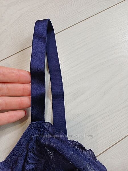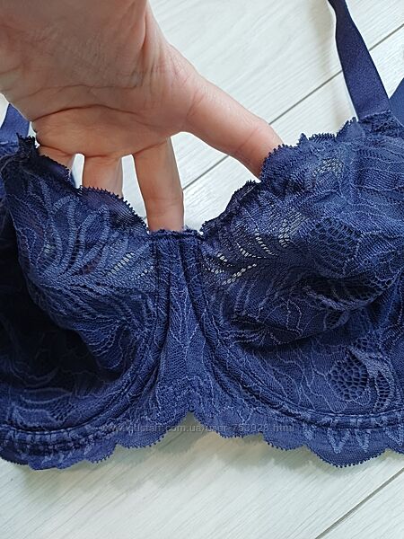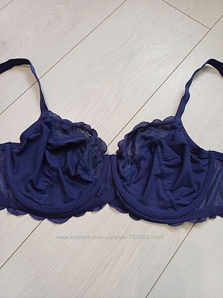 У продажу мереживний бюстгальтер від німецького Tcm Body by Tchibo Essentials, розмір з бирки вказаний 90D, колір темно-синій. Бюстгальтер з тонкою чашкою без поролону, на кісточках. Повністю виконаний з мережива, широкі верхні ремені та широка комфортна спинка. Вся джовжина бюстгальтера-79см, висота чашки по центру-19см. Стан ідеальнийДругие объявления продавца
