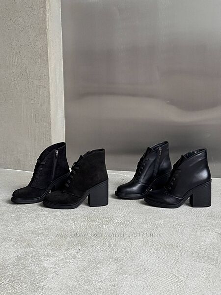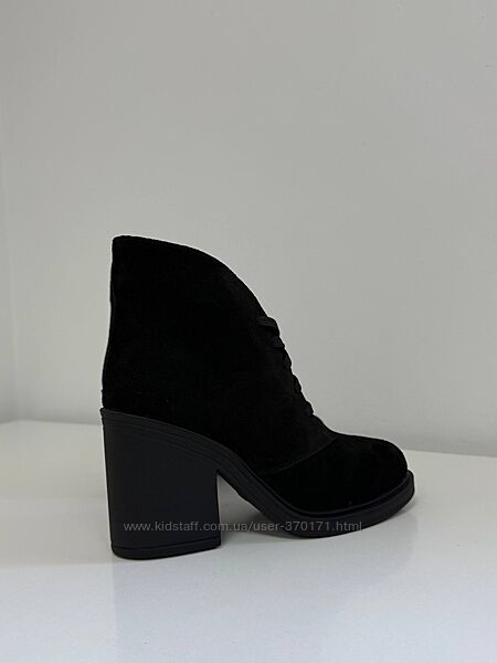 Подробное описание: Демі Ботильйони на стійкому підборі, замша, шкіра