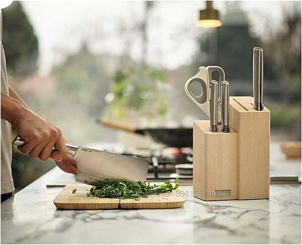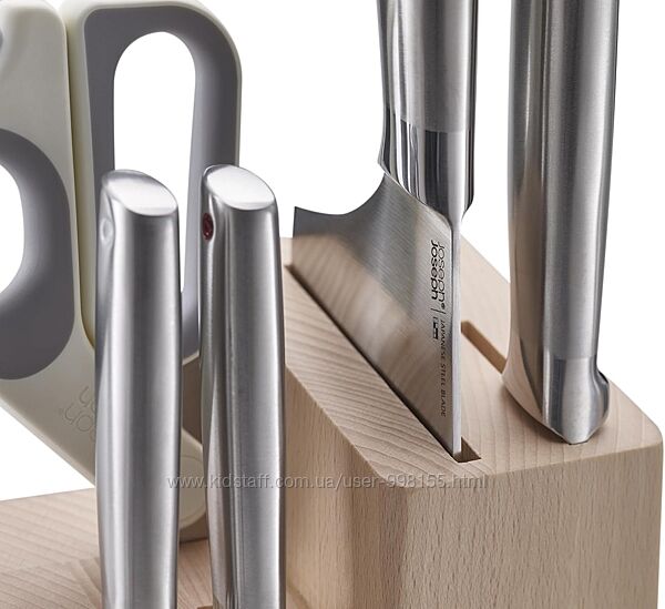 Набір кухонних ножів та ножиці з підставкою Joseph Joseph Elevate Fusion 5-piece knife, cleaver and scissor set with beechwood block 10557v1 привезений з США.Оригінал.Новий в наявності.Матеріал : Нержавіюча сталь