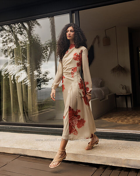 Квіткова сукня ZARA Limited Edition з останньої колекції!Струменева сукня середньої довжини А - силуету , спадаючий комір .