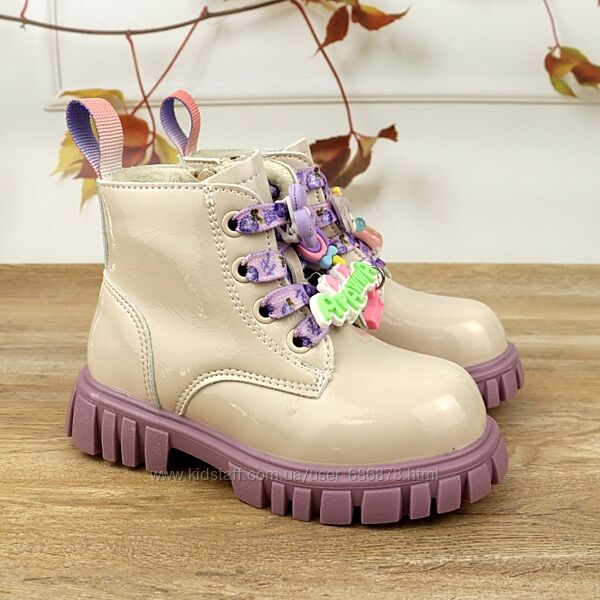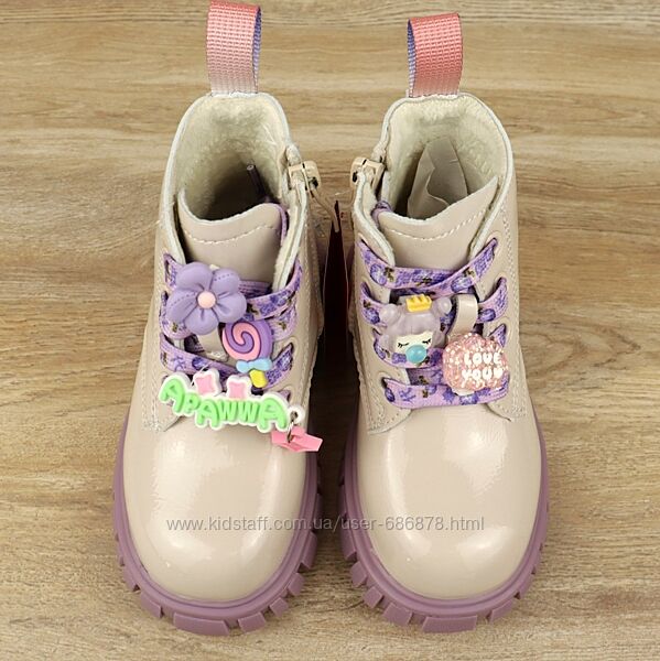 Черевики дитячі Apawwa N752 beige-purple 21-25| Демисезонная обувь для девочкиКод товара: N752 beige