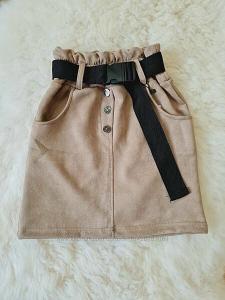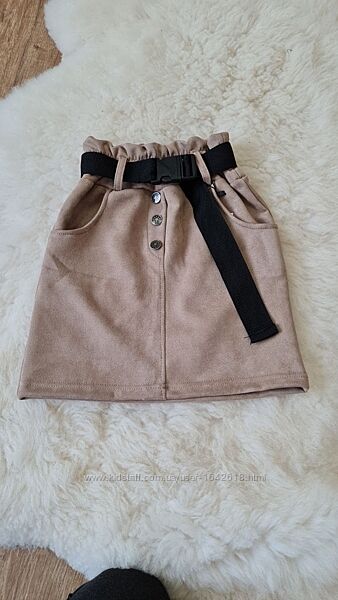 Стильна спідниця для дівчинки підлітка. Спідниця пошита з тканини замш діагональ, м´яка і приємна до тіла, добре тягнеться. Є функціональні кишені, в комплекті ремінець тканинний.Розмір: 164зріст