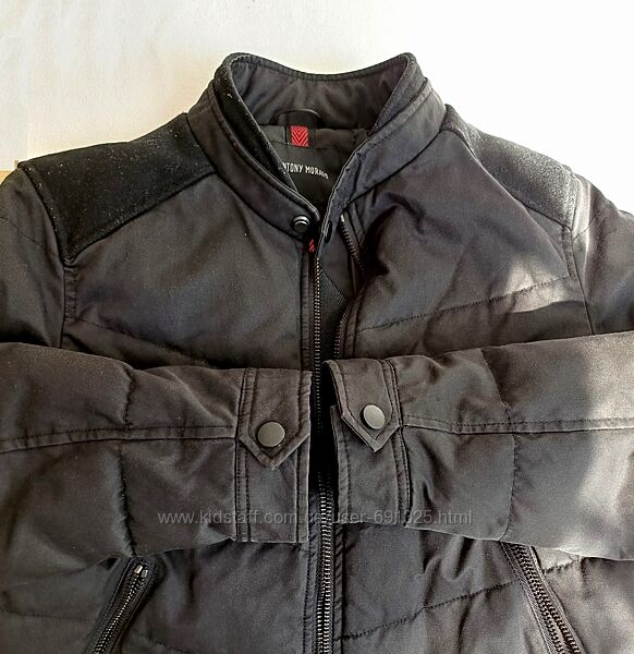 Пропоную чорну куртку бомбер ANTONY MORATO. Верх - водостійка тканина 61% бавовна, 39% поліестр, підкладка поліестр, всередині синтепон. Капюшона немає. Уживана акуратно, стан відмінний, дивіться фото.Розмір вказано на 12 років, зріст 152 см. Довжина 52 см, ширина плечей 40 см, довжина рукава від плеча 56 см, ширина грудей під пахвами 48 см.