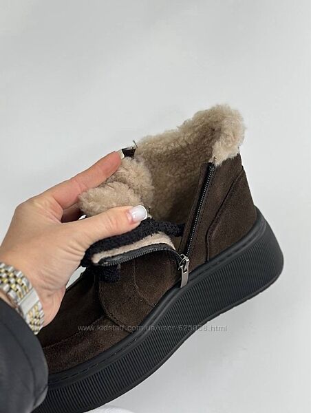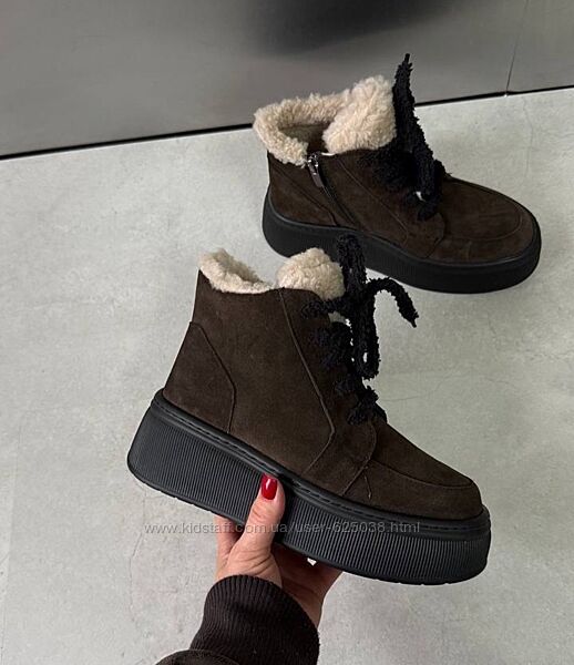 Подробное описание: Ботінки жіночі Зима з натуральноі замші кольору шоколад