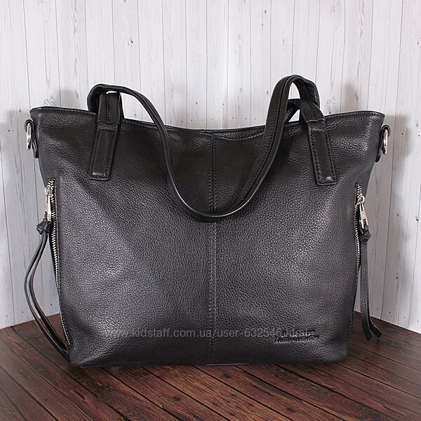 Класична модель м´якої зручної сумки на кожен день. Модель носиться на плечі на двох ручках, також в комплекті є довгий ремінь. М´яка натуральна шкіра, надійна фурнітура і міцна підкладка гарантують Вам комфорт і довговічність виробу. У сумці 2 відділення і 6 кишень - 3 внутрішніх і 3 зовнішніх. Сумочка містка і зручна. Розмір (В*Ш) (см)27*38 Ширина дна (см)9,5 Ручки2 Висота основної ручки (см)22 Довжина основної ручки (см)44 Довжина додаткової ручки (см)130