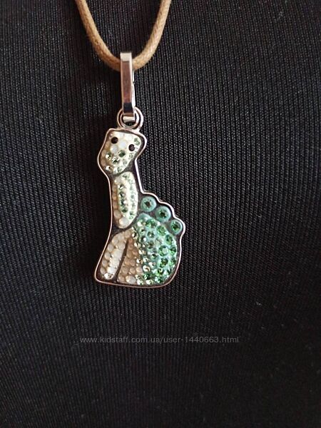 Підвіска Swarovski з оригінальним шнурком. Без браслета. Стан нової речі.Оздоблення сріблястим. Усі камені переливаються красиво. Оригінальна річ на шию, браслет або як брелок. Довжина регулюється. Шнурок можна носити навколо шиї, як чокер, зав´язувати. Так само стильно виглядає :)