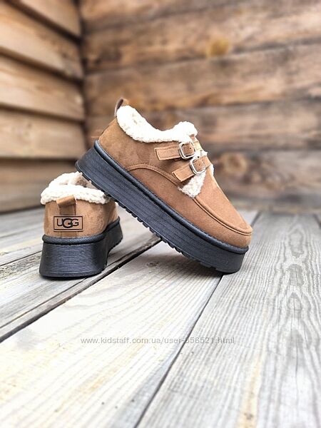 Угги короткие с двумя ремешками на высокой подошве с лейбл UGG на пяточке и утепленной стелькой женскиепроизводство Украина
