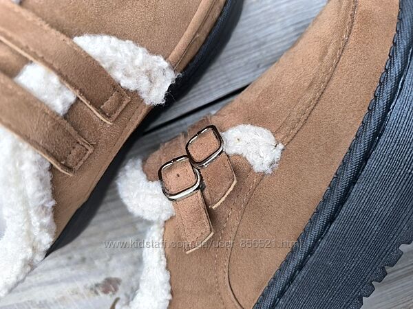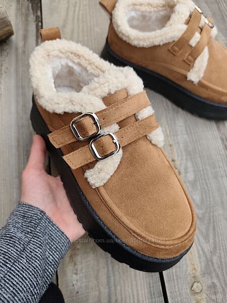 Короткие угги из искусственной замши в стильном рыжем цвете на черной высокой подошвой – идеальный выбор для холодного сезона.