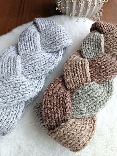 Пропоную оригінальні в´язані пов´язки на голову Косичка. В наявності та на замовлення. Гарна альтернатива для тих, хто не носить шапки.На фото пов´язки з напіввовни, але можливо зв´язати з будь-якої пряжі, з будь-якими змінами моделі чи візерунку.