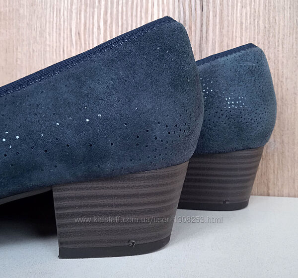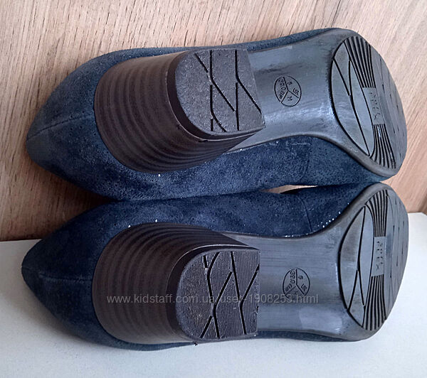 Подробное описание: Німецькі натуральні замшеві туфлі, сині човники на широку ногу літо демі 38