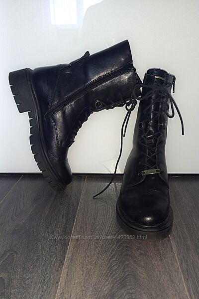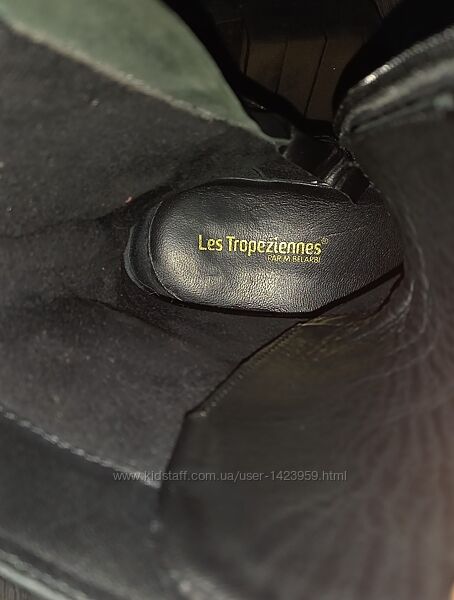 Высокие ботинки Les Tropeziennes чёрный кожа чёрный замок шнурок 36р Весна Осень ЗимаКлассные симпатичные оригинальные стильные добротные высокие кожаные ботиночки Les Tropeziennes на весну осень и на зиму -высокая тракторная подошва и каблук-не дают замёрзнуть ножкам, как раз зимой их и одевала на мороз и снег пару раз. Верх плотная кожа, внутри кожа и бархатистая пухленькая ткань. В абсолютно идеальном состоянии, выгуляла пару раз. Брала на свой 36-й стелька 23,5см- Норм:) На шнурках и молнии. Один нюанс по модели- на них была фурнитура золотистые пуговицы за которые цеплялись шнурки, но они начали сыпаться буквально у меня в руках- я их все общипала, оставили по 2 пуговки на ботинке, на месте пуговок- остались аккуратные отверстия, куда я заправила шнурки, так даже лучше, потому что из таких пуговиц-петель -шнурки очень часто выбиваются, что не удобненько, а так, на себе застегнули на молнию, отрегулировали шнурок по себе один раз и всё, потом ныряем только через замок)) Стелька 23,5см высота от пола 23см , каблук 4см, подошва 2см.