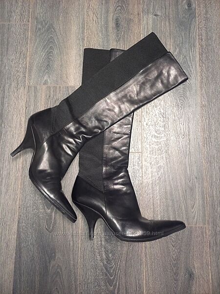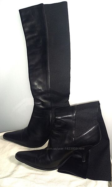 Сапоги ботфорты Bally кожа текстиль резина чёрный 39-39,5р ИталияВысокий сапог, в меру острый носочек, красивой формы устойчивый каблук рюмочка. Родной размер 39,5 но Балли как правило маломерки, рекомендую на 38,5-39. Из мягкой плотной маслянистой кожи, половина голенища сзади по вертикали плотный трикотаж(по верху тянется минимум +3см) Кожа- верх и внутри, стоят набойки и дорогая профилактика, состояние идеальное, царапок затёртостей нет, есть незаметная зарубка на внутренней стороне каблука. Удобные стильные и дорогая торговая марка, девочки) Высота от пятки- 40 см, устойчивый каблук 8см, ПОГоленища внизу-13/17-вверху +растягивается резиновое полотно, без застёжек, нормальный не узкий подъём. Наложка с предоплатой на расходы по почте.