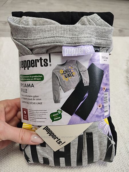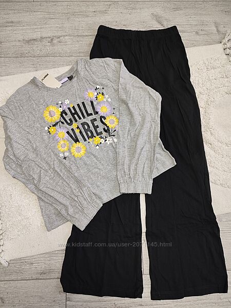 Піжама для дівчинки з довгим рукавом від німецького бренду Pepperts. Укорочений реглан та широкі штани-палаццо.Приємна до тіла, якісна натуральна тканина Склад: реглан 90% бавовна, 10% віскоза, штани 100% бавовна.
