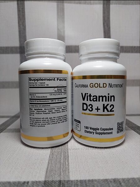 Вітаміни D3 й K2 в рослинних капсулах від California Gold Nutrition®