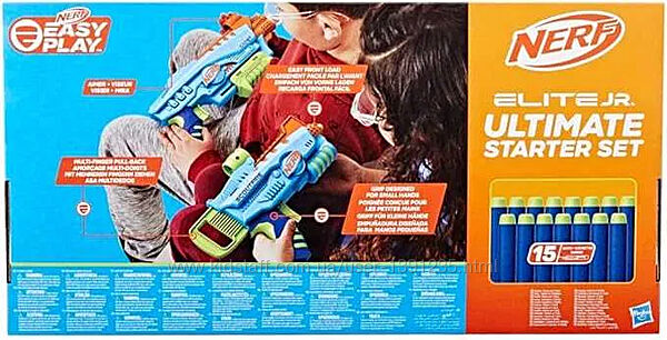 Цей набір іграшкових бластерів NERF Elite junior Ultimate Starter створений для дітей, які вперше беруть участь у боях Nerf.Набори є в кольоровій та еко упаковці