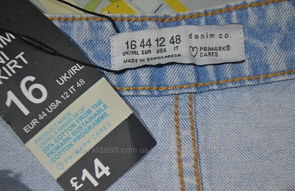 Нова джинсова спідниця від бренду Primark. Оригінал. НОВА, з біркою. Розмір вказаний 16, наш XXL або 52, EURO 44 – орієнтуйтесь на заміри. На змійці і гудзику. Є дві кишені спереду і дві – на попі.ПОТ (ширина по поясу від краю до краю) –45 см.