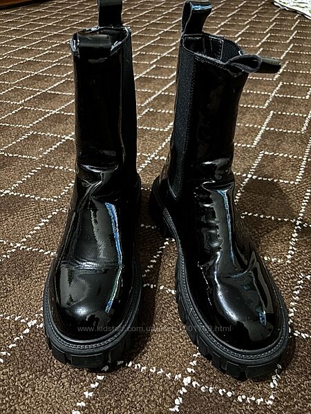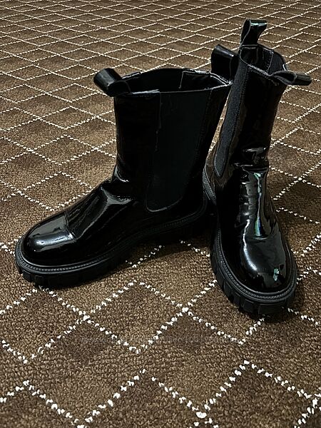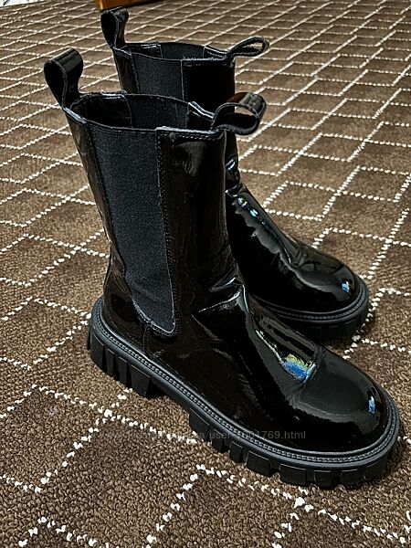 Чорні високі жіночі шкіряні лакові півсезонні черевики з утепленням.Підходять на осінь/весну.