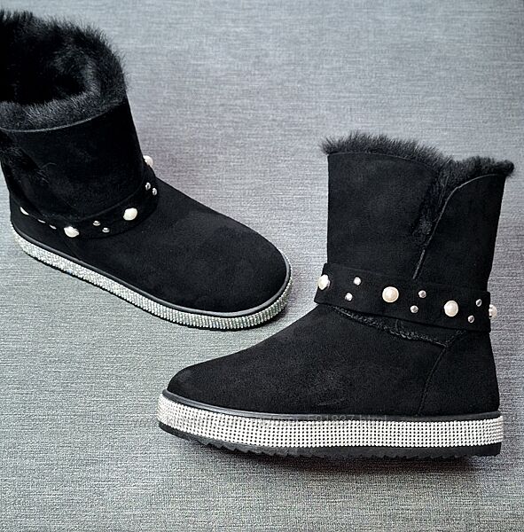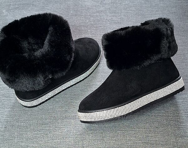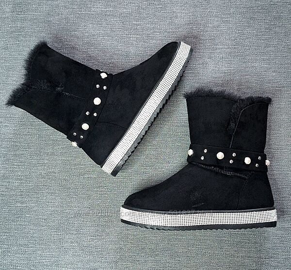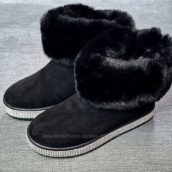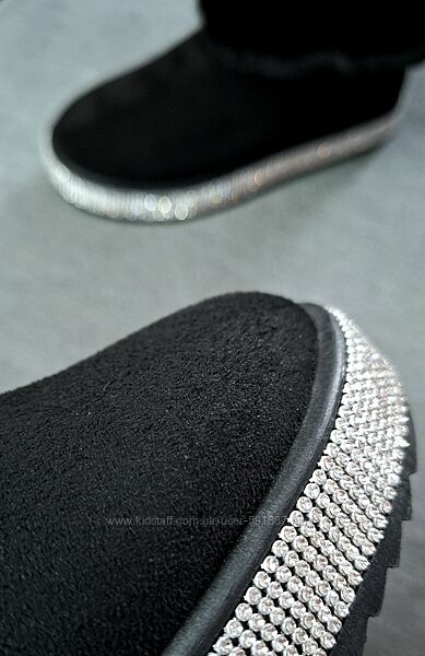 Подробное описание: Демісезонні зимові уггі на дівчинку чорні короткі зі стразами 24 см