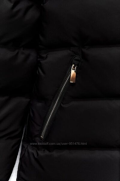 - Високий комір з капюшоном, що відстібається, оздоблений штучним хутром, яке теж відстібається.
