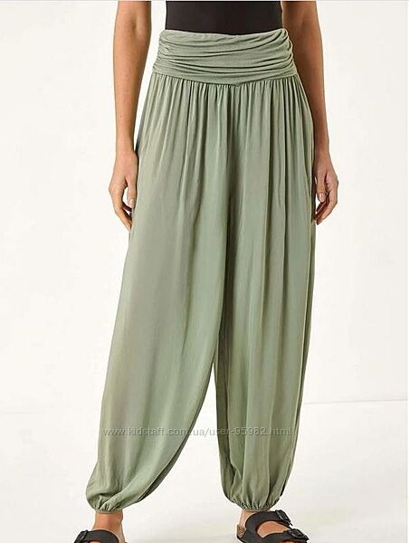 Легкі штани-гаремки Room Lytham, тонкі, повітряні. Дуже зручні для найспекотнішої літньої погоди. Лінію талії можна регулювати вище абонижче, хто як любить. Розмір не вказаний, приблизно на л-хл,