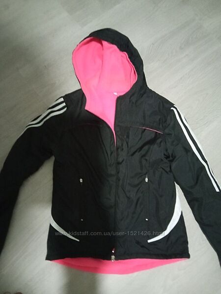 Подробное описание: Тепла куртка для дівчинки 140 см 40. Чорна з яскравим рожевим флісом
