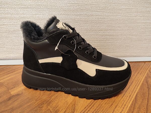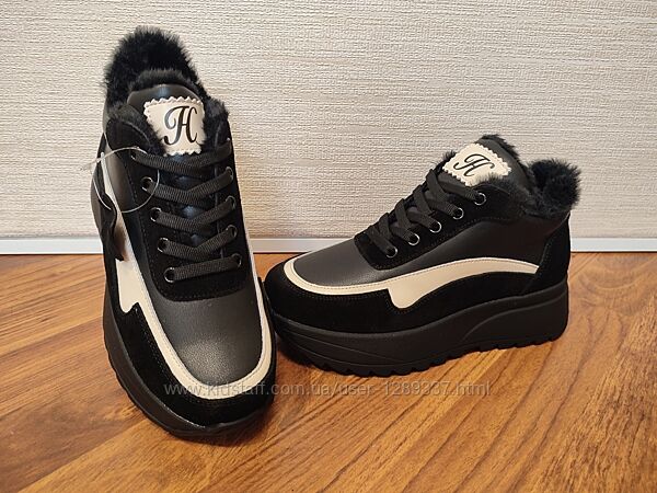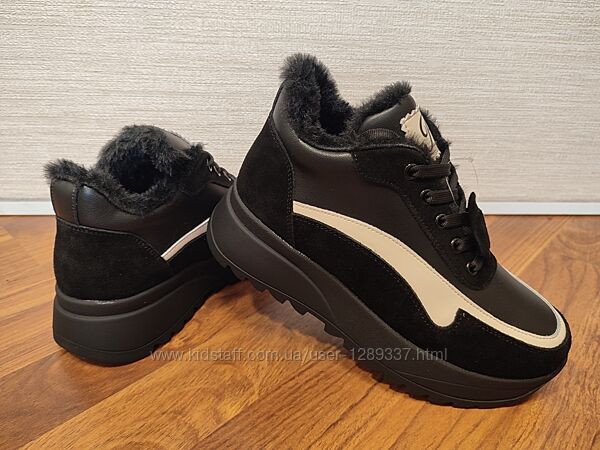 Подробное описание: Кросівки жіночі зимові шкіряні чорні з бежевим
