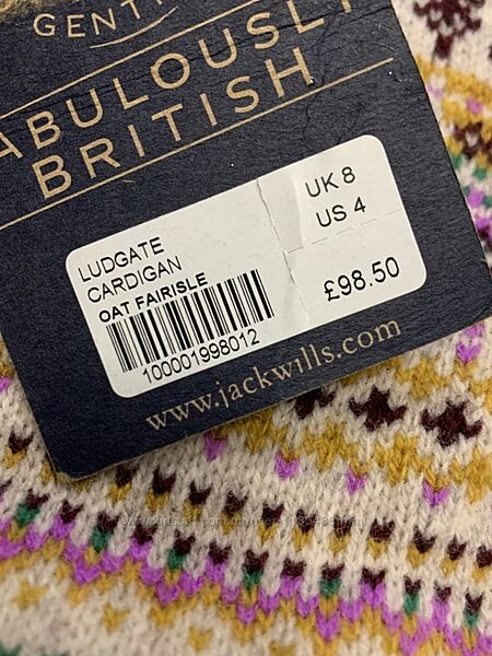 Вовняний кардіган/кофта Jack Willsр. 8/36/S - підійде також на р. XS/34/6Принт - Fair Isle (впізнаваний шотландський візерунок).