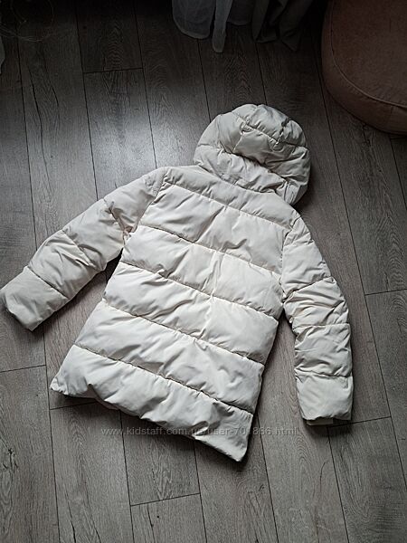 дута тепла курточка трохи подовженого фасонумолочного кольору