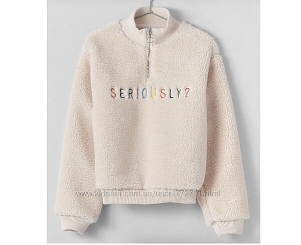 Теплая кофта толстовка, свитер, мех шерпа, на подкладке, Bershka, с принтом Seriously.Отличное качество.