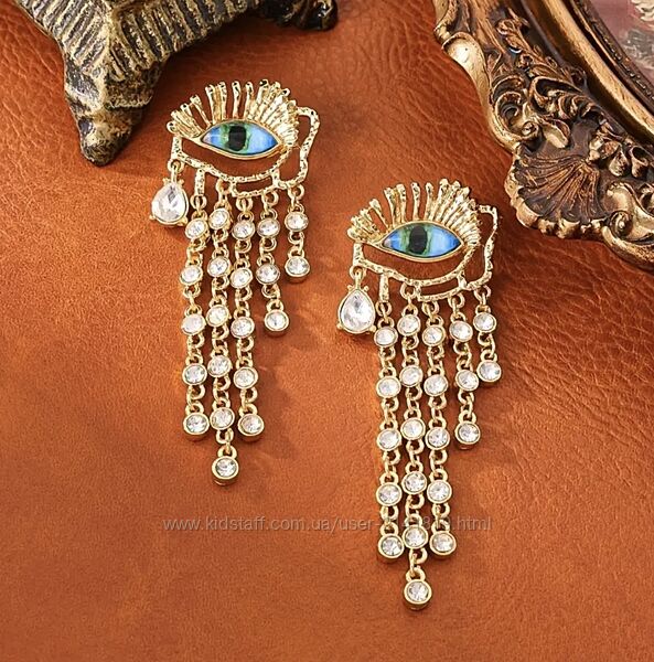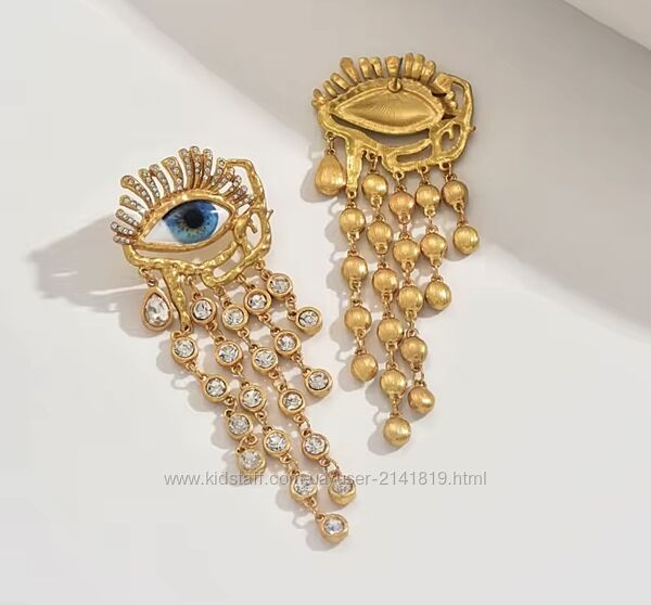 Красивые женские сережки глаза, украшенные стразами, выполненные в стиле роскошных неподражаемых ювелирных изделий модного дома Schiaparelli.Размер: 3 см х 8,5 см