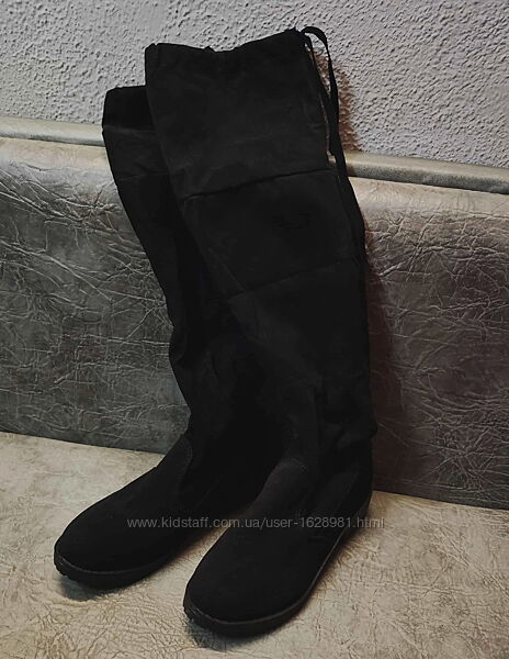 Удобные ботфорты на низком каблуке новые с хорошим глубоким протектором текстиль под замшу, выглядит дорого и благородно сзади завязка, которую можно спрятать внутрь не радикально высокие, скорее будут чуть над коленом (зависит от вашего роста и длины ног) без утеплителя причина продажи: купила себе, но на мою ногу 23,2 см прям совсем впритык, - заказала другого размера (а так хочется уже погулять в них, понравились...) идеальные сапожки на весну или осень, когда не слишком дождливо, или на теплую зиму ухаживать за текстильной обувью легко - просто протереть намыленной мочалкой, потом отжатой чистой, и промакнуть полотенцем Сопутствующие товары: сумки, одежда, бижутерия