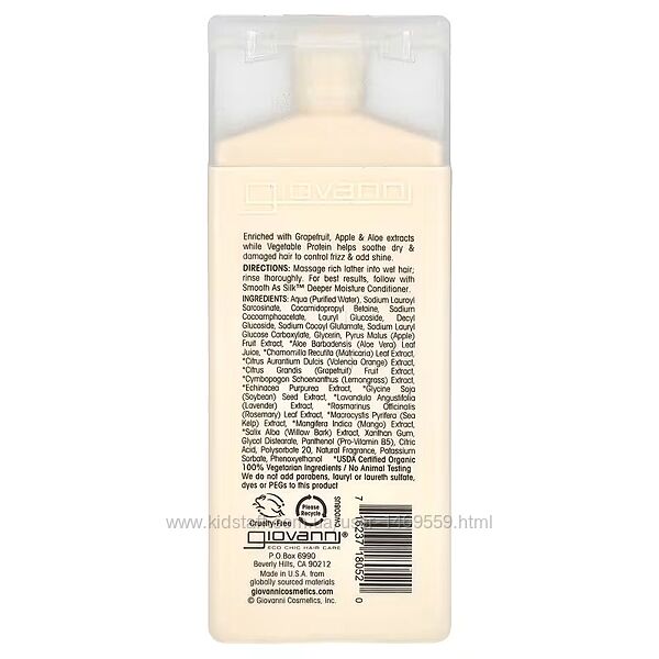 Подробное описание: Giovanni Smooth As Silk Інтенсивно зволожувальний шампунь 60 мл