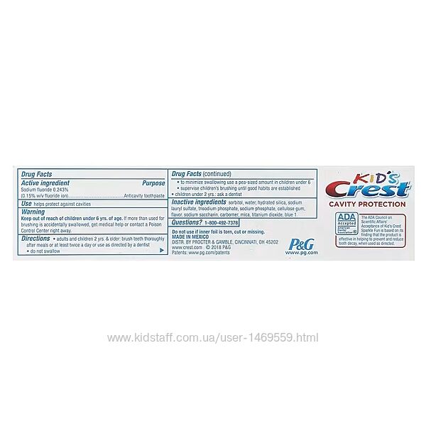 Подробное описание: Crest Фторидна зубна паста для захисту від карієсу для дітей Блискучі кольо