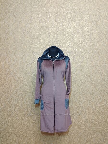 Подробное описание: Жіночий велюровий халат на блискавці з капюшоном, кишенями та поясом.